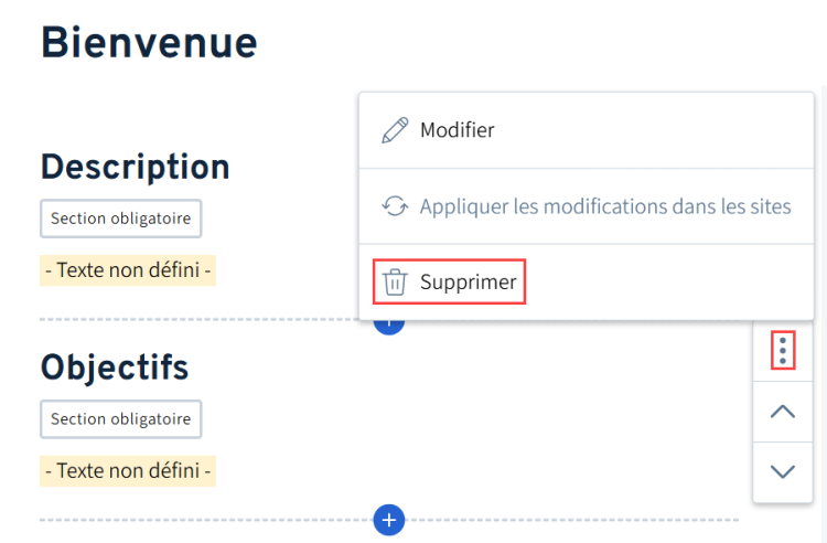 Sélectionnez la section que vous souhaitez supprimer et cliquez sur le menu d’options