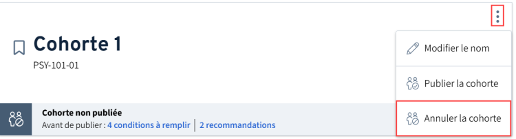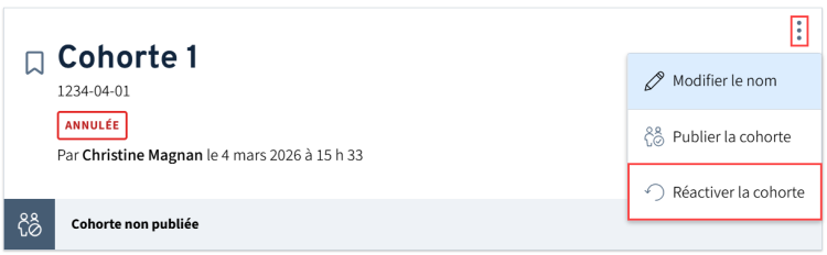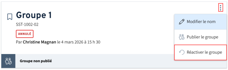 Au besoin, consultez la section ci-bas Réactiver un groupe ou une cohorte.