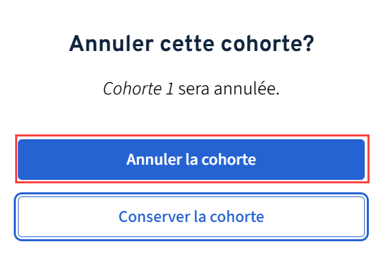 - Conservera les inscriptions de ce groupe ou cette cohorte dans l'outil de gestion de la formation.