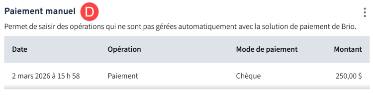 Elle sert à renseigner les transactions de paiement ou de remboursement qui ont été effectuées manuellement hors Brio.