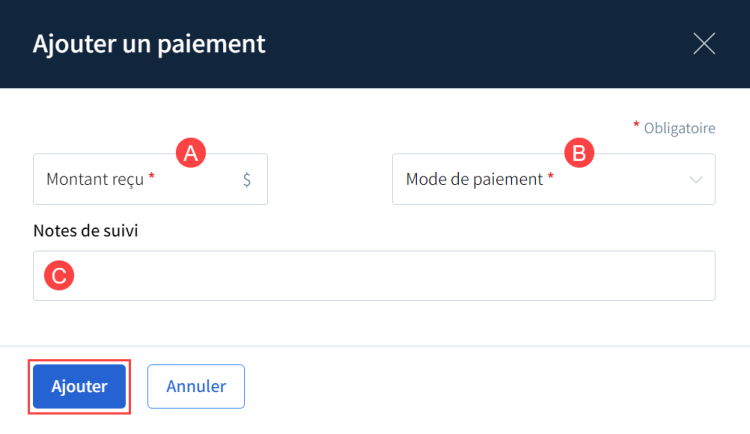 Sélectionnez le mode de paiement utilisé dans la liste déroulante.