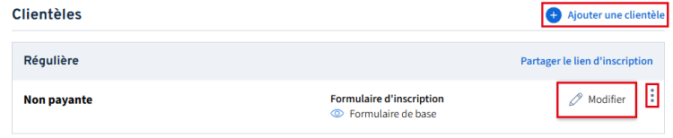 Pour modifier une clientèle, cliquez sur le menu d’options