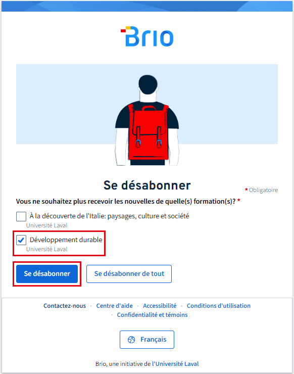 Si vous désirez vous désabonner de l’ensemble des listes d’intérêt, cliquez sur Se désabonner de tout.