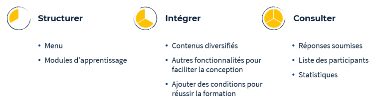 La page Réussir la formation permet d’informer le participant des conditions nécessaires pour réussir la formation. Elle peut également servir à l’évaluation automatique ainsi que pour générer des attestations, le tout centralisé au même endroit.