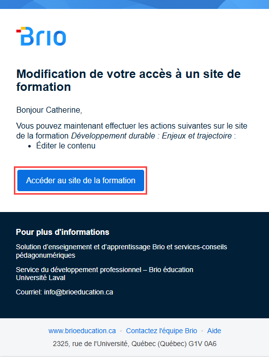 1. Accédez au courriel que vous avez reçu lorsque les accès vous ont été attribués sur un site.