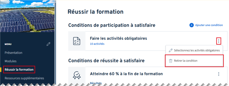 Ajouter ou retirer des conditions à satisfaire pour réussir la formation