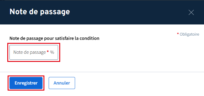 Inscrivez la note de passage pour satisfaire la condition dans le champ indiqué.