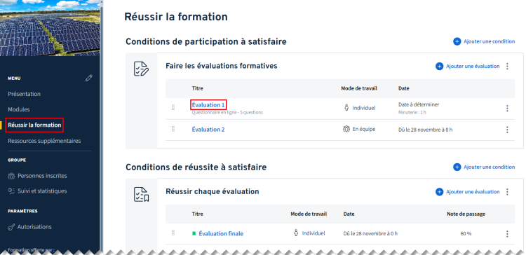 Pour les évaluations de la formation continue, il est uniquement possible de passer d’une évaluation à une autre lorsqu’elles appartiennent à la même condition.