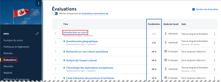 c) Cliquez sur le titre de l’évaluation ciblée.