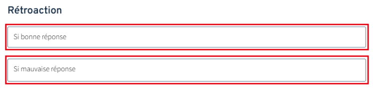 - Dans les champs Si bonne réponse et Si mauvaise réponse, rédigez la rétroaction appropriée. Au besoin, utilisez la barre de défilement vers le bas pour afficher la section Rétroaction.