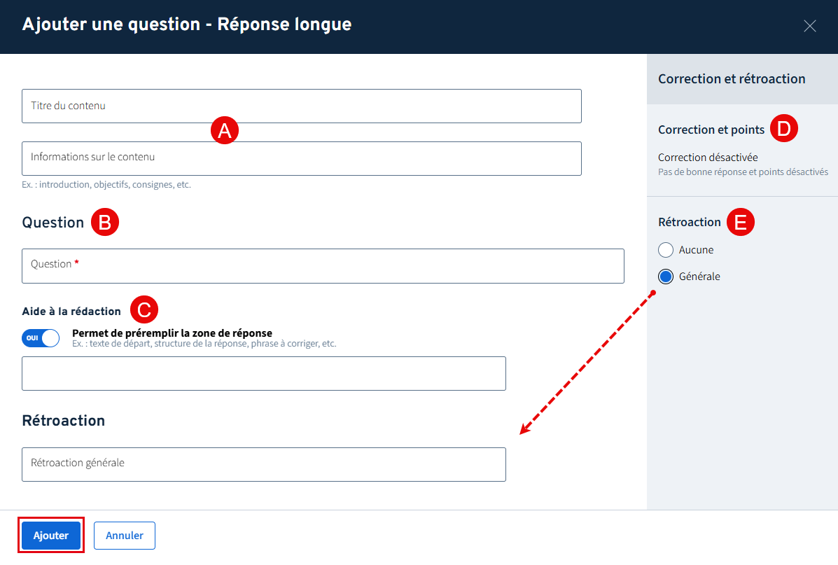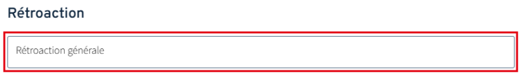 - Dans le champ Rétroaction générale, rédigez la rétroaction. Au besoin, utilisez la barre de défilement vers le bas pour afficher la section Rétroaction.