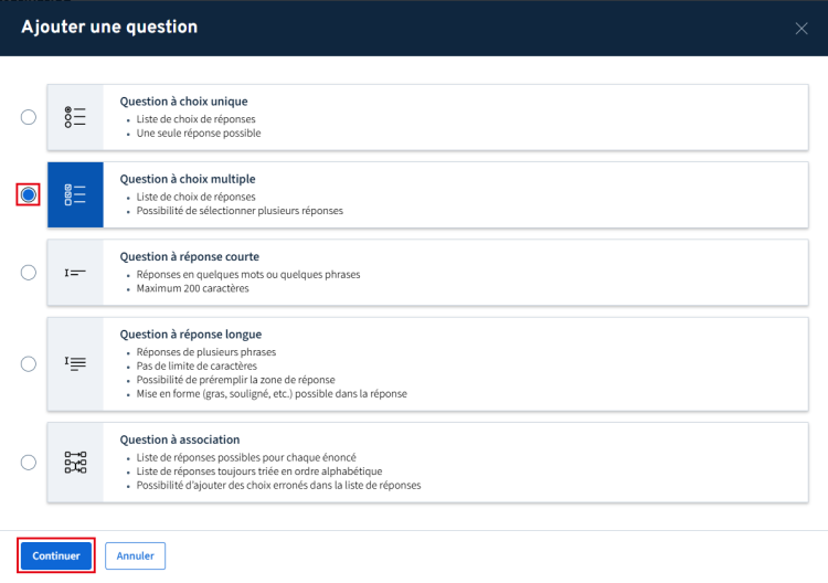 La fenêtre Ajouter une question - Choix multiple s’ouvre.