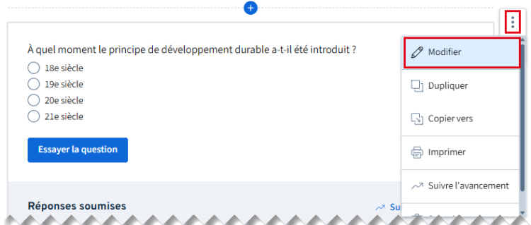 Une question intégrée dans un module est, par défaut, sans pointage. Son insertion a pour objectif de rendre la formation plus interactive et d’offrir à l’apprenant la possibilité de valider sa compréhension ou de noter sa réflexion en lien avec un sujet abordé.