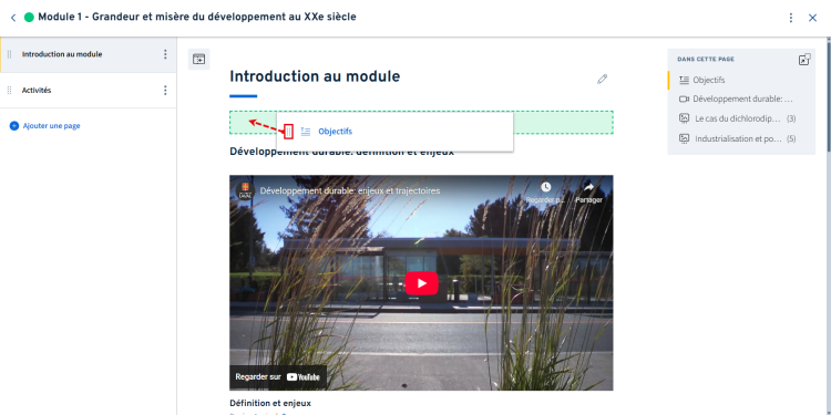 Modifier l’ordre d’une page de contenus dans un module