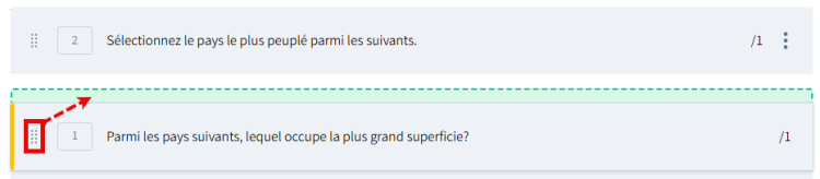 Identifiez la question que vous souhaitez déplacer et cliquez sur l'icône de déplacement