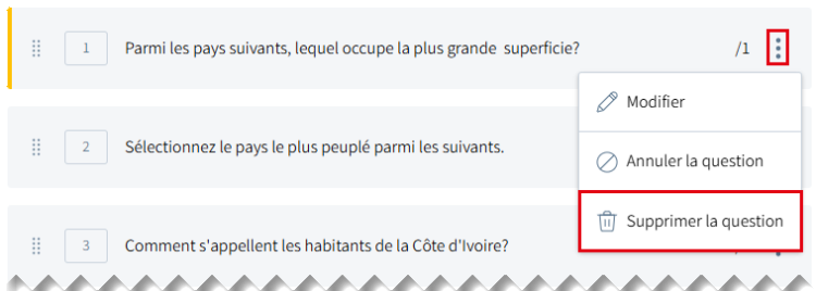 Identifiez la question que vous souhaitez déplacer et cliquez sur l'icône de déplacement de la question ciblée.