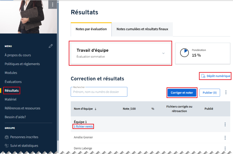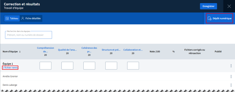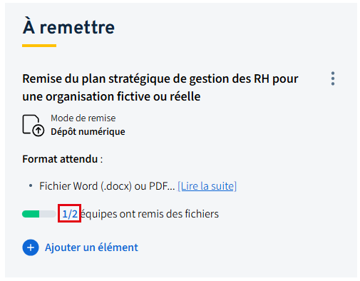 Cliquez sur le nombre d’équipes ayant remis des fichiers dans la section À remettre.