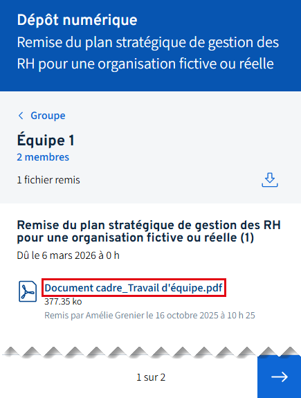 L’accès aux fichiers s’effectue également dans la section À remettre en cliquant sur le nombre de personnes ayant remis des fichiers.