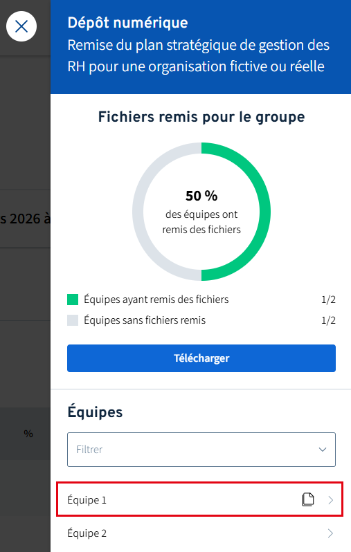b) Le panneau Dépôt numérique de l’équipe s’ouvre.