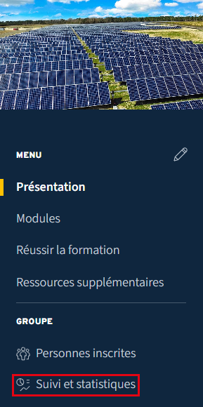 Dans le menu du site, cliquez sur Suivi et statistiques.