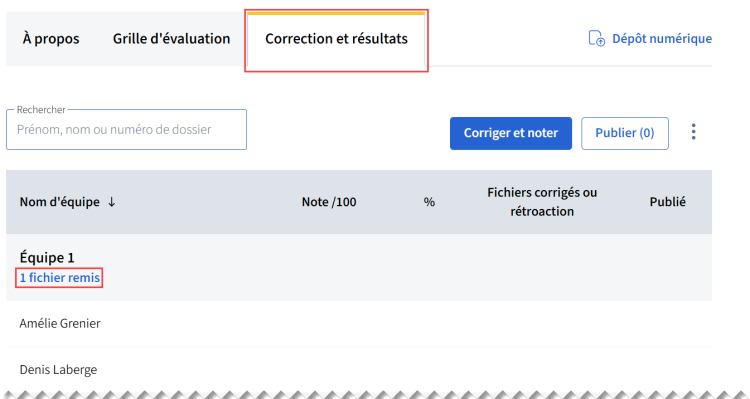 Il est maintenant possible pour la personne responsable de la correction d’accéder directement aux fichiers remis par les équipes à partir de l’onglet Correction et résultat.